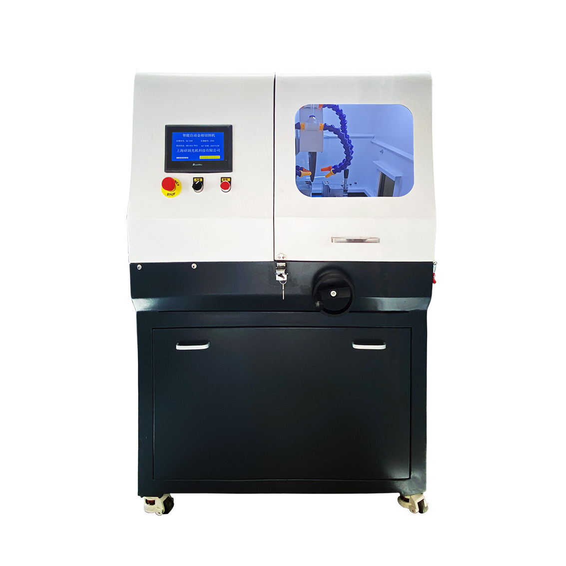 一、产品简介: ZQ-150F主要针对异形件、不规格件而研发的立地一体式三轴(X/Y/Z)全自动智能金相切割,具备金相试样切割、开槽、取薄平片、切段等多种精密切割功能。尤其适合汽车零部件、铸造类、特殊切割要求等的精密定位切割取样。独特的多种组合切割模式设计,可实现垂直切割、分层切割、往复切割等多重切割方式. 二、技术特点: 1、立地一体式切割机; 2、手自一体智能切割机; 3、三轴联动(X/Y/Z)三轴自动; 4、多种自动切割模式(垂直切割、分层切割、水平切割、联动切割); 5、超大切割室(透明切割观察窗口) 6、选配:磁性分离系统(有效分离切割金属杂质))   三、技术规格:| 型号 | ZQ-150F | | 切割室规格 | 右侧切割室结构 | | 主要功能 | 切断、精密切片、定深开槽等功能 | | 主轴转速 | 100 - 3000r/min(无极调速) | | 平台X移动 | 手动50mm(选配自动) | | X轴速度 | 0 - 100mm(无极调速) | | Z轴行程 | 150mm | | Z轴速度 | 0 - 200mm | | 平台Y行程 | 自动/手动250mm | | 平台Y速度 | 0 - 200m(无极调速) | | 控制系统 | 8寸彩色触摸屏、PLC控制系统 | | 最大切割直径 | Φ110mm | | 圆盘类切割尺寸 | 200*80mm(外径*高度) | | 切割方式 | 垂直切割、分层切割、水平切割、联动切割(选配) | | 进给方式 | 进退比任意设定 | | 有效进刀距离 | 110 + 200mm | | 完成量追踪 | 液晶数显(时时显示) | | 切割台尺寸 | 200*300mm | | 切割片最大规格 | Φ350*2.5*Φ32mm | | 切割速度 | 1 - 200mm/分钟 | | 夹持台规格 | 分体式双层可移动平台 | | 在线调速 | 任意调整(1 - 100mm/分钟) | | 复位方式 | 自动复位(完成量追踪) | | 冷却系统 | 自动(水冷4通道) | | 水箱容量 | 60L | | 电机功率 | 4KW | | 机台形式 | 立地一体式 | | 电源 | 380V | | 外形尺寸 | 900*850*1400mm(长*宽*高) | | 净重 | 330KG | | 毛重 | 380KG |
